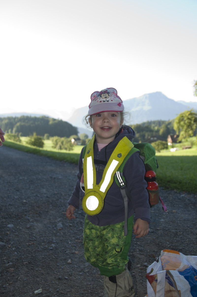Mittwoch, 26. August 2015 Hoet hani mit erschte Tag e de Waldspielgruppe. Ech darf met em Mami ond em Papi det äne go. Ech freu mech. Ech ha ganz spezielli Chleider ond gone denn met em Papi ond em Mami zäme ufe i Wald. Det werdi vo 2 Häxli begrüsst. Sie begleitid üs übers ganzi Johr. Ech mache das ganz guet. Sie zeigid üs, wo alles im Wald obe esch ond of was mer muend luege.