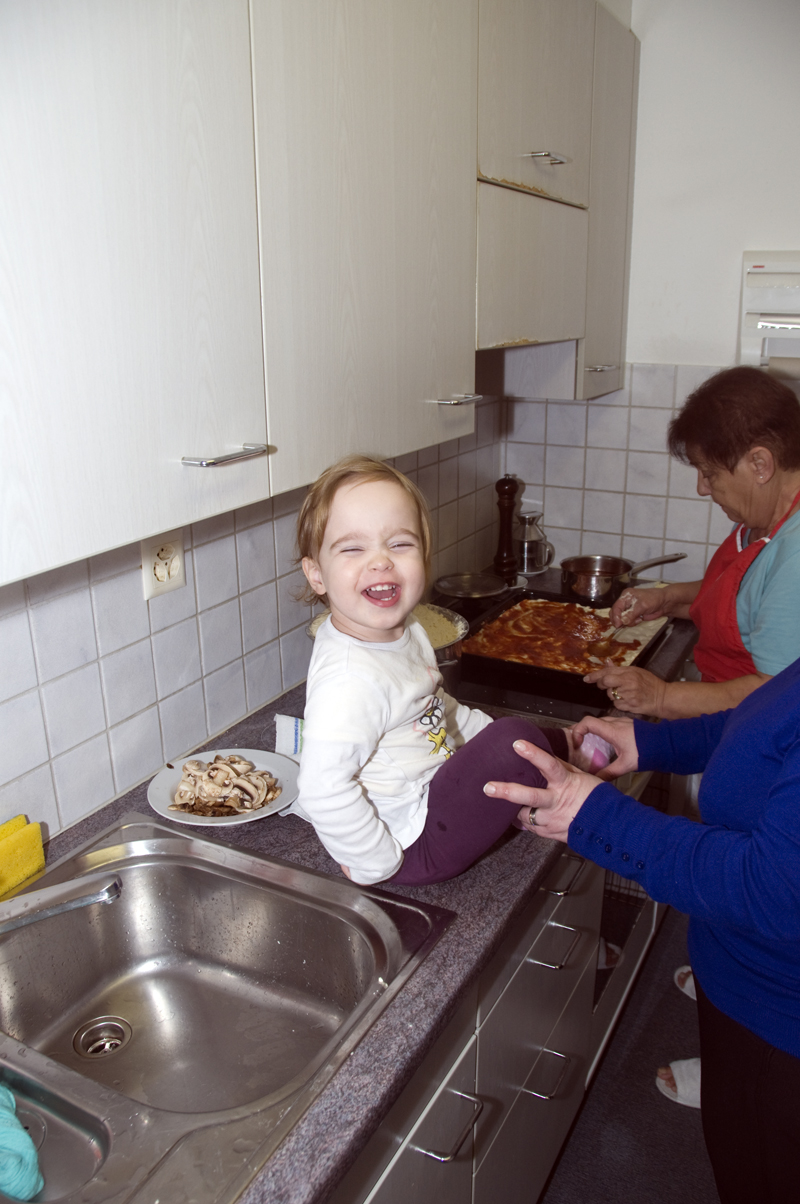Ech luege interessiert zu, wie d'Nonna Pizza macht.