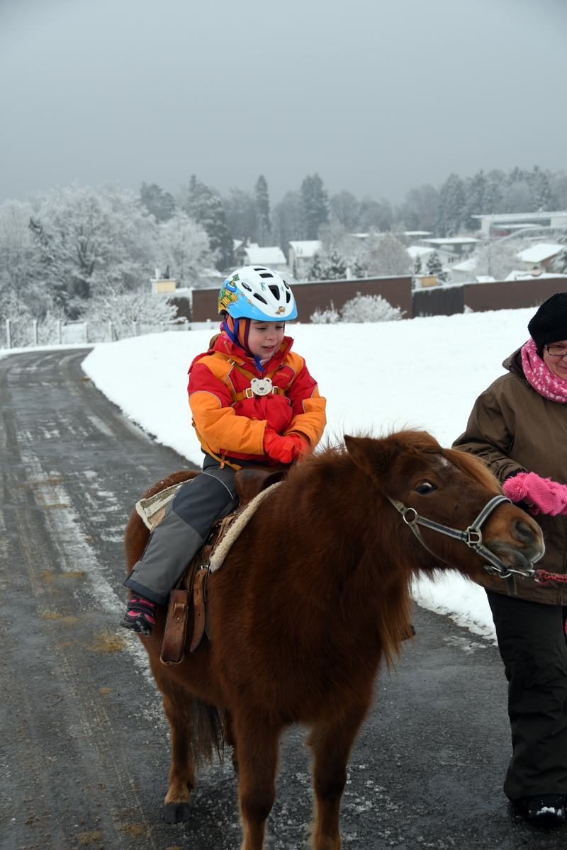 Dienstag, 3. Januar 2017 Hoet stoni uf ond es hed gschneit gha. ech fend das toll well ech Gebortstag ha. Ech darf hoet am 10i go riite met de Raja. E ganzi Stond darf ech denn riite. Es gfalt mehr sehr.