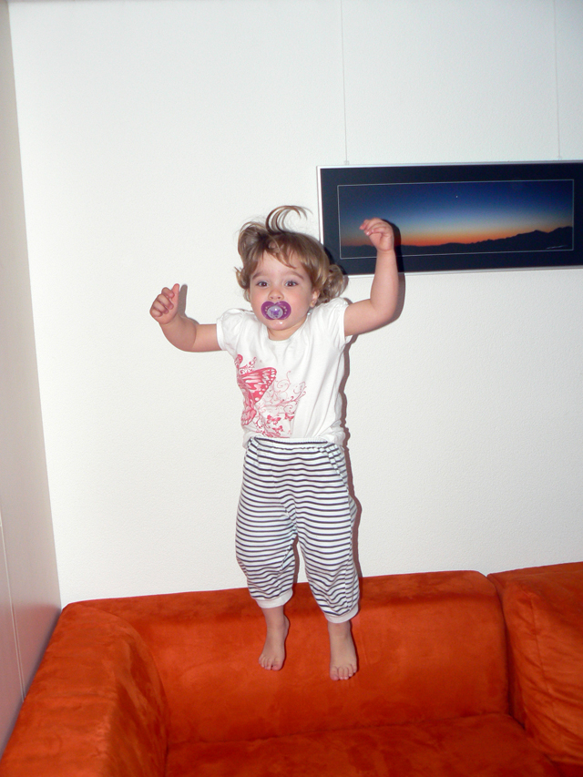 Sonntag, 27. Juli 2014 Ech gompe hoet elei of de Polstergroppe omenand. De Papi verwoetsch mech met eme Fotiapparat. Ech hange jetzt i de Loft.