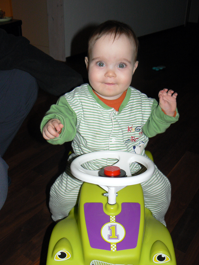Freitag, 30. November 2012 Ech cha jetzt weder of Sorsi fahre. s'Mami chond met mer weder is Pekip. Ech be jetzt die gröschti. So beni die einzig wo scho cha omechrable ond spele. Em Mami gfallt das weniger. Mer fahrid denn of Aemme. Ond d^Nonna luegt det met mer zom Mami. Mer goend no gäge de Oebig met em Papi go ichaufe. Ech darf s'erscht Mol em Wage denne sitze ond omeluege. Das esch cool.