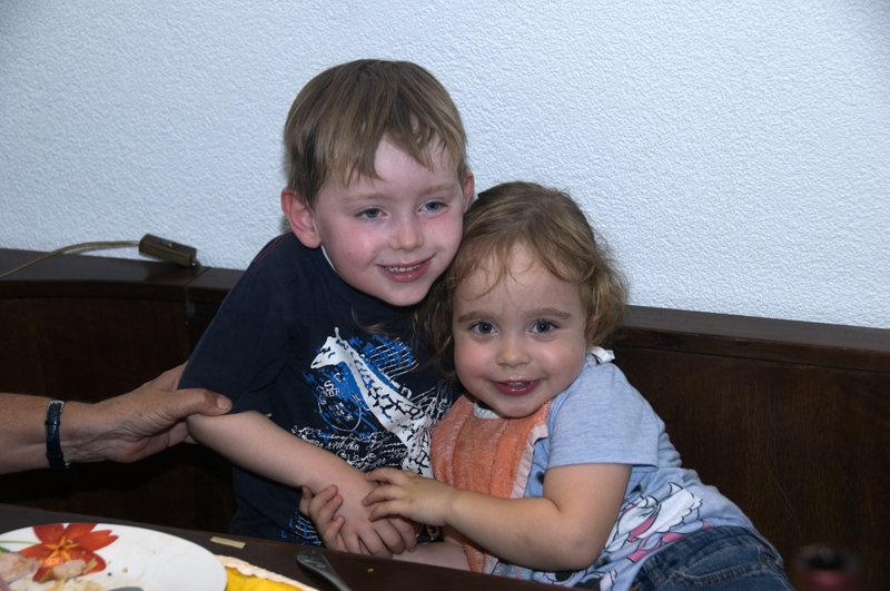 Am Obig semmer denn no met allne zäme in Krüzberg go aesse. Ech ha Rahmschnitzeli ond Pommes gha. Met de naomi hani gärn zäme gässe. De Nonno het noch eme drittel vom Cordonbleu ufgä.
